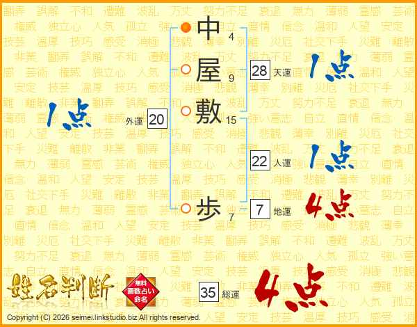 中屋敷歩さんの総運は35画の4点!