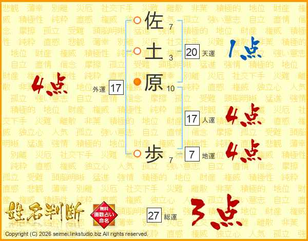 佐(7画)土(3画)原(10画) 歩(7画)