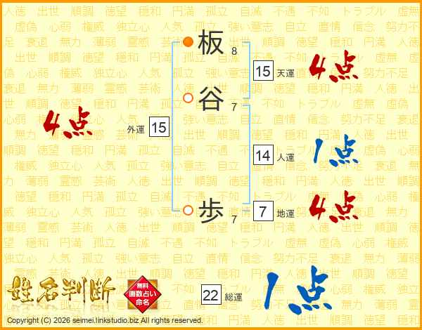 板谷歩さんの天運は15画の4点!