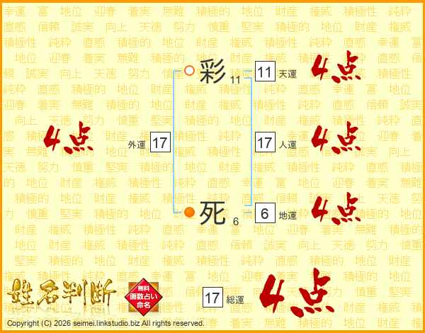 彩死さんの総運は17画の4点!