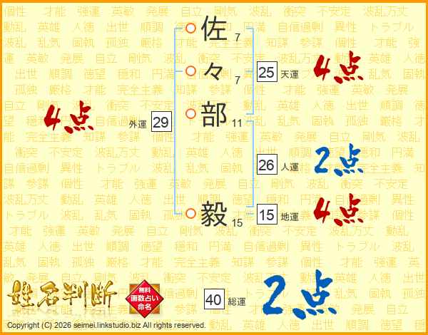 佐々部毅さんの総運は40画の2点!