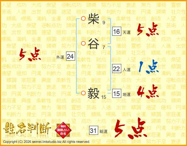 柴谷毅さんの総運は31画の5点!
