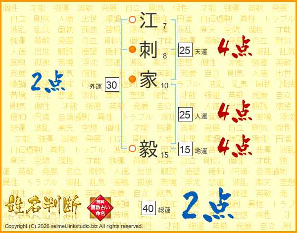 江刺家毅さんの総運は40画の2点!