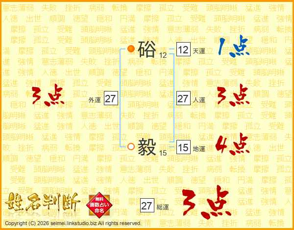 硲毅さんの人運は27画の3点!