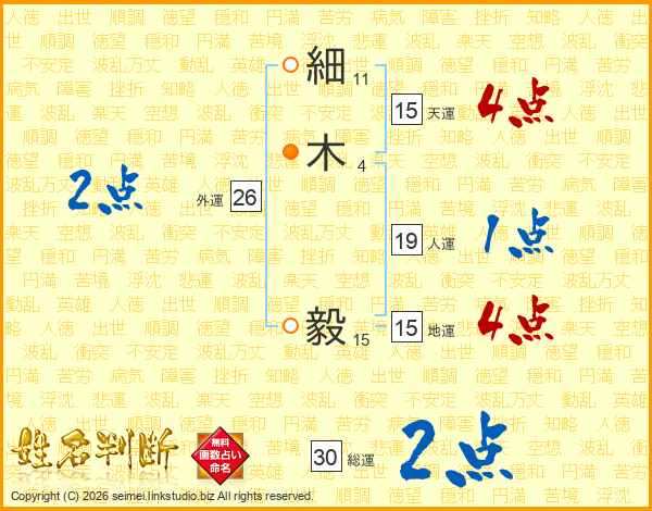 細(11画)木(4画) 毅(15画)
