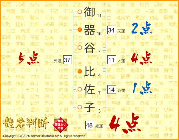御器谷比佐子さんの外運は37画の5点!