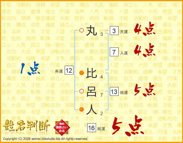丸比呂人さんの総運は16画の5点!