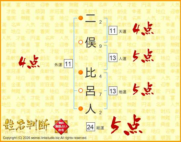 二俣比呂人さんの総運は24画の5点!