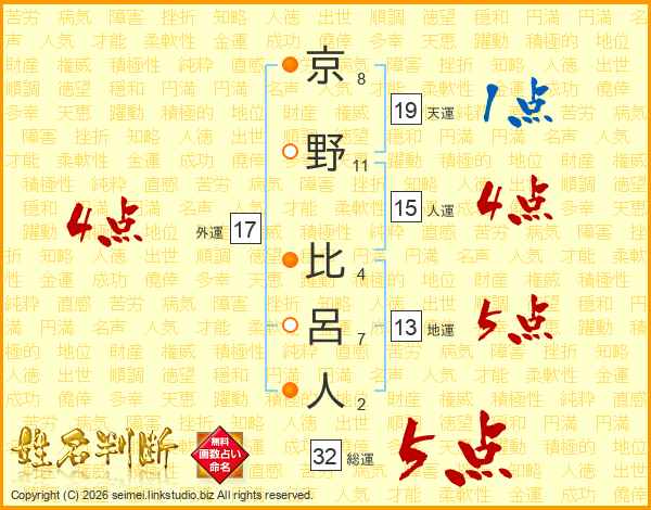 京野比呂人さんの総運は32画の5点!