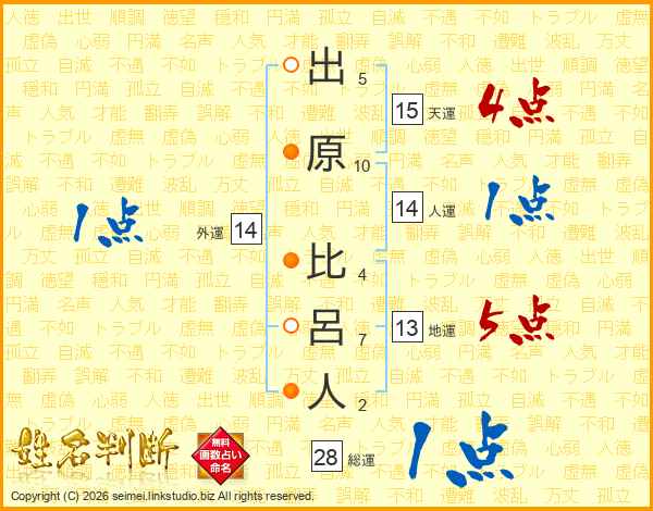 出原比呂人さんの総運は28画の1点!