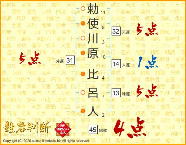勅使川原比呂人さんの総運は45画の4点!