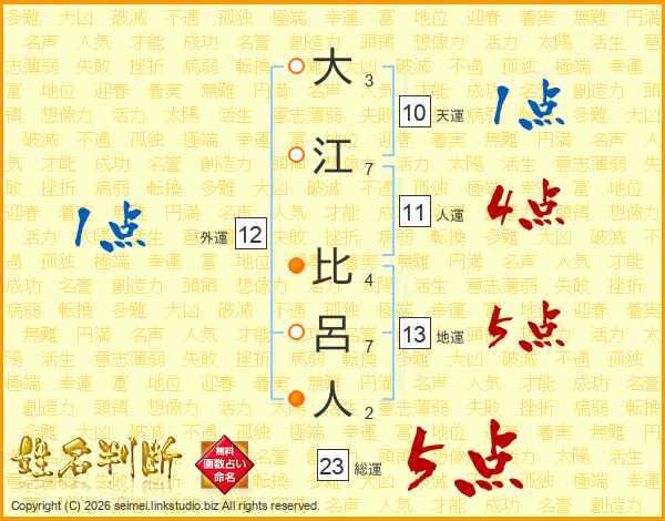 大(3画)江(7画) 比(4画)呂(7画)人(2画)
