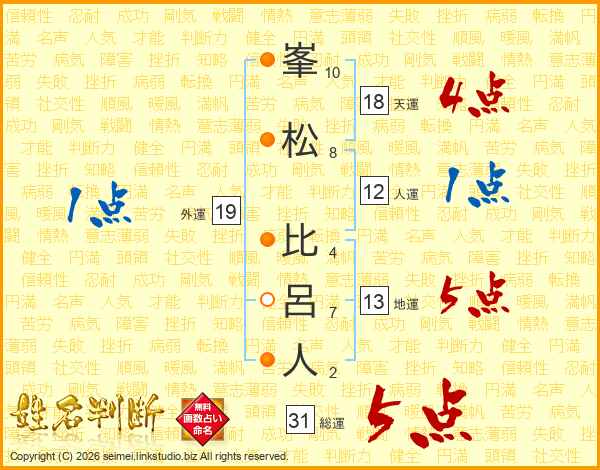 峯松比呂人さんの総運は31画の5点!