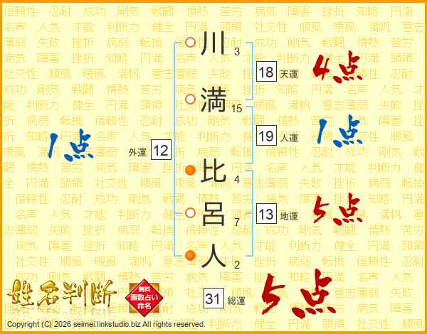 川(3画)満(15画) 比(4画)呂(7画)人(2画)