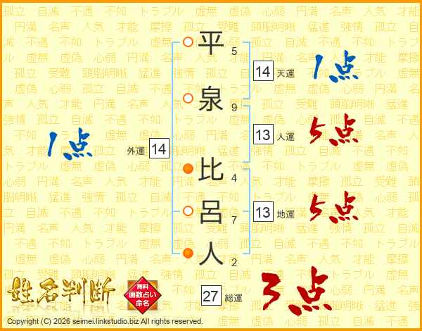 平泉比呂人さんの人運は13画の5点!