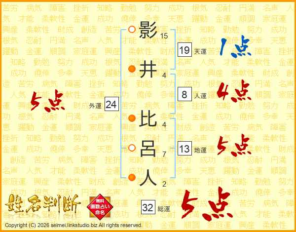 影井比呂人さんの総運は32画の5点!