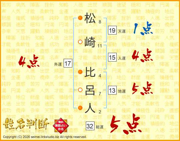 松崎比呂人さんの総運は32画の5点!