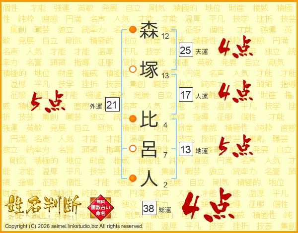 森塚比呂人さんの総運は38画の4点!