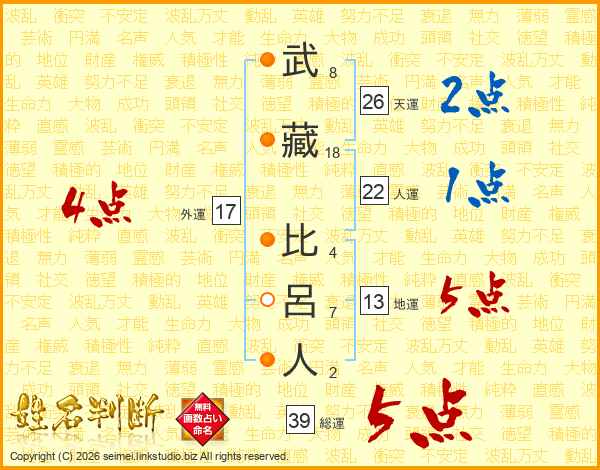 武(8画)藏(18画) 比(4画)呂(7画)人(2画)