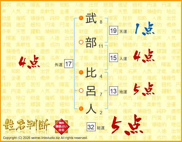 武部比呂人さんの総運は32画の5点!