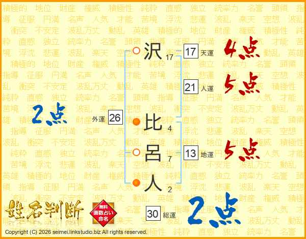 沢(17画) 比(4画)呂(7画)人(2画)