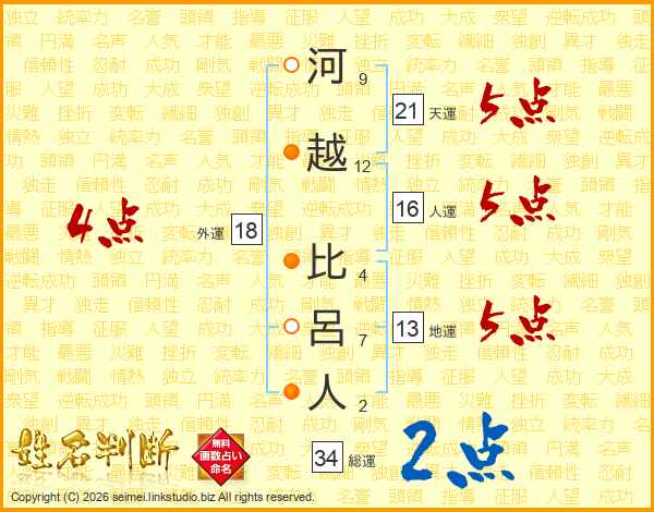 河越比呂人さんの総運は34画の2点!