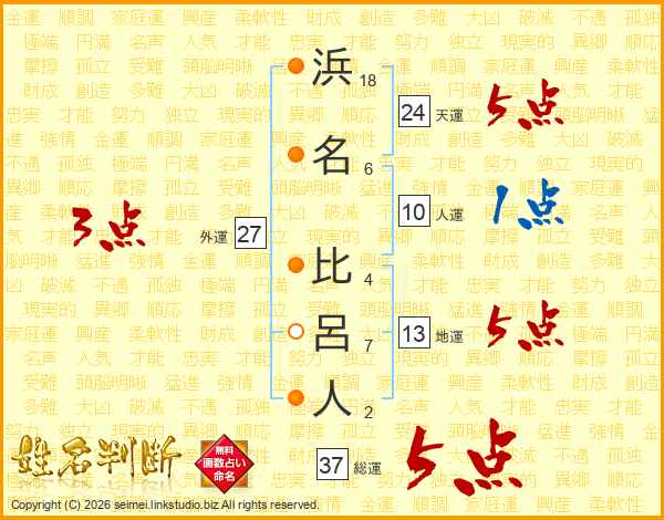 浜(18画)名(6画) 比(4画)呂(7画)人(2画)