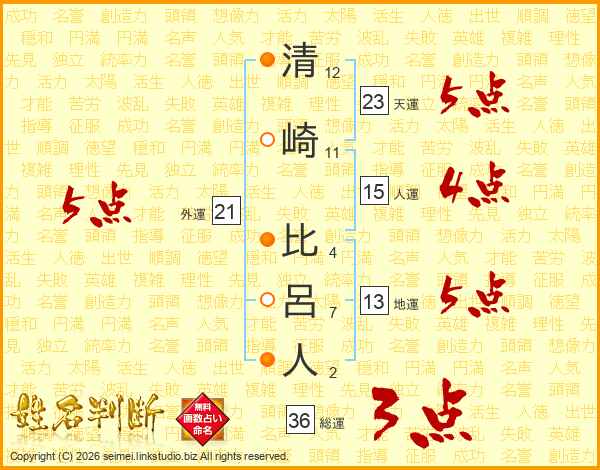 清(12画)崎(11画) 比(4画)呂(7画)人(2画)