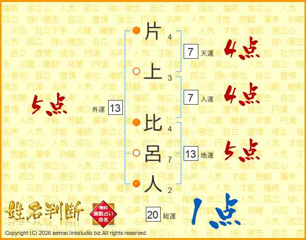 片上比呂人さんの天運は7画の4点!