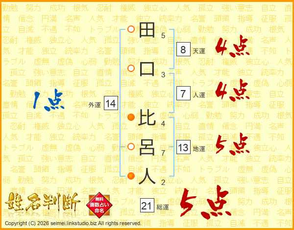 田(5画)口(3画) 比(4画)呂(7画)人(2画)