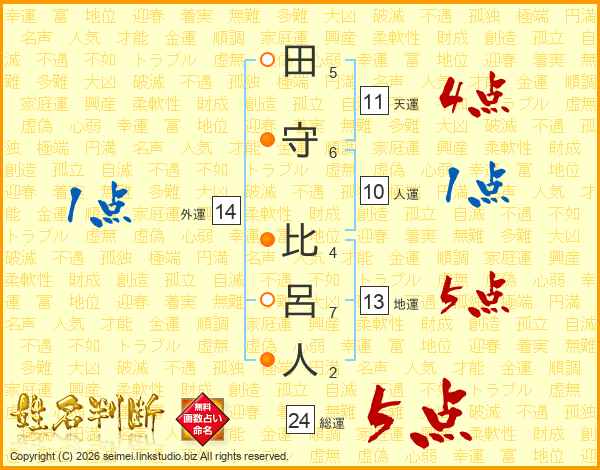 田守比呂人さんの総運は24画の5点!