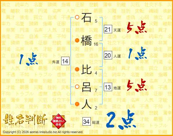 石橋比呂人さんの天運は21画の5点!