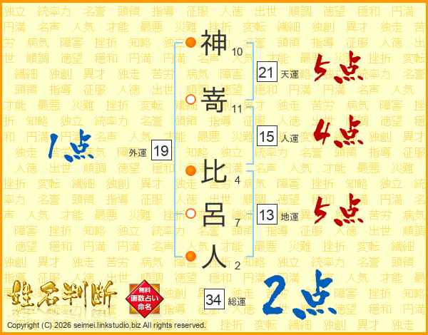 神(10画)嵜(11画) 比(4画)呂(7画)人(2画)