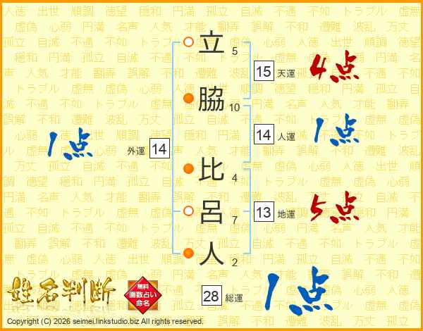 立脇比呂人さんの総運は28画の1点!