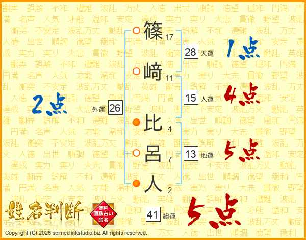 篠﨑比呂人さんの総運は41画の5点!