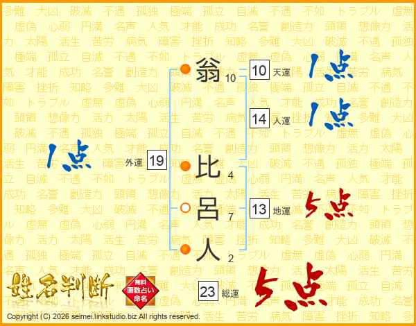 翁比呂人さんの総運は23画の5点!