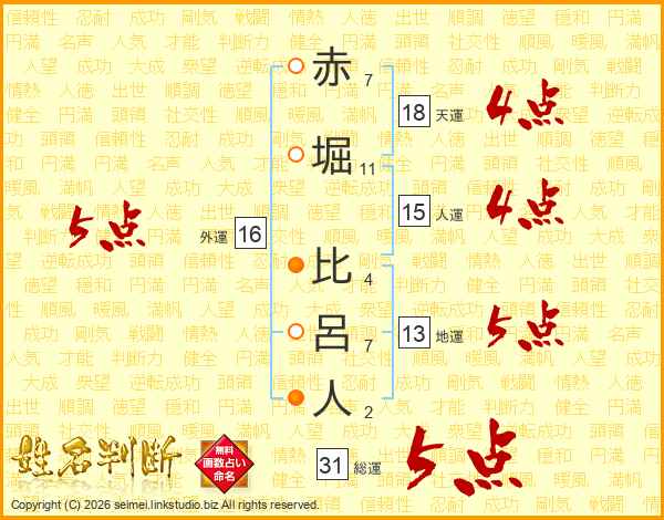 赤堀比呂人さんの総運は31画の5点!
