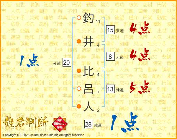 釣井比呂人さんの天運は15画の4点!