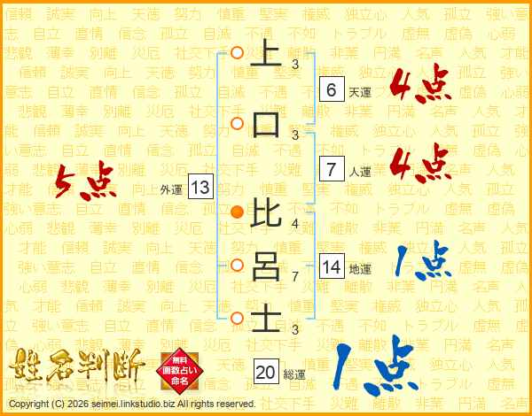上口比呂士さんの外運は13画の5点!