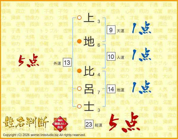 上地比呂士さんの総運は23画の5点!