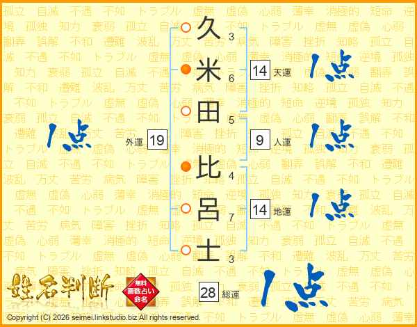 久(3画)米(6画)田(5画) 比(4画)呂(7画)士(3画)