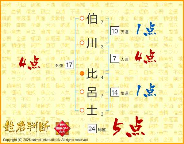 伯川比呂士さんの総運は24画の5点!