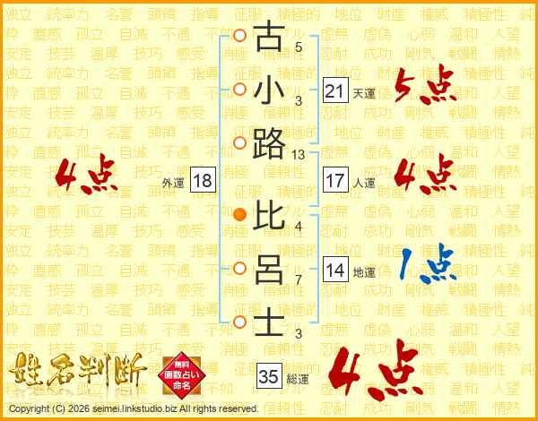 古小路比呂士さんの総運は35画の4点!