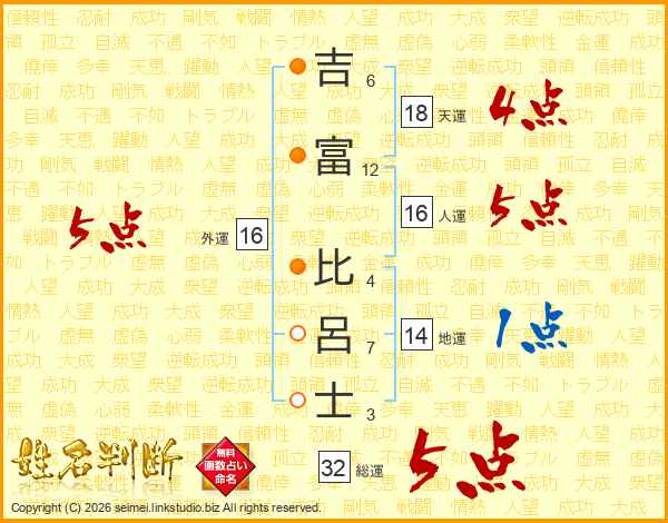 吉富比呂士さんの総運は32画の5点!