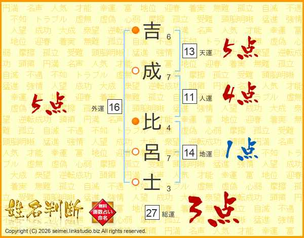 吉成比呂士さんの総運は27画の3点!
