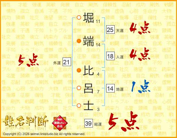 堀端比呂士さんの総運は39画の5点!