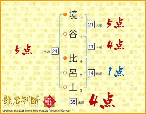 境谷比呂士さんの総運は35画の4点!