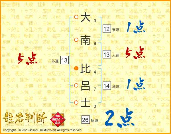 大(3画)南(9画) 比(4画)呂(7画)士(3画)