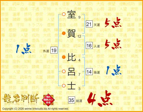 室賀比呂士さんの総運は35画の4点!