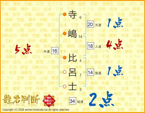 寺嶋比呂士さんの総運は34画の2点!